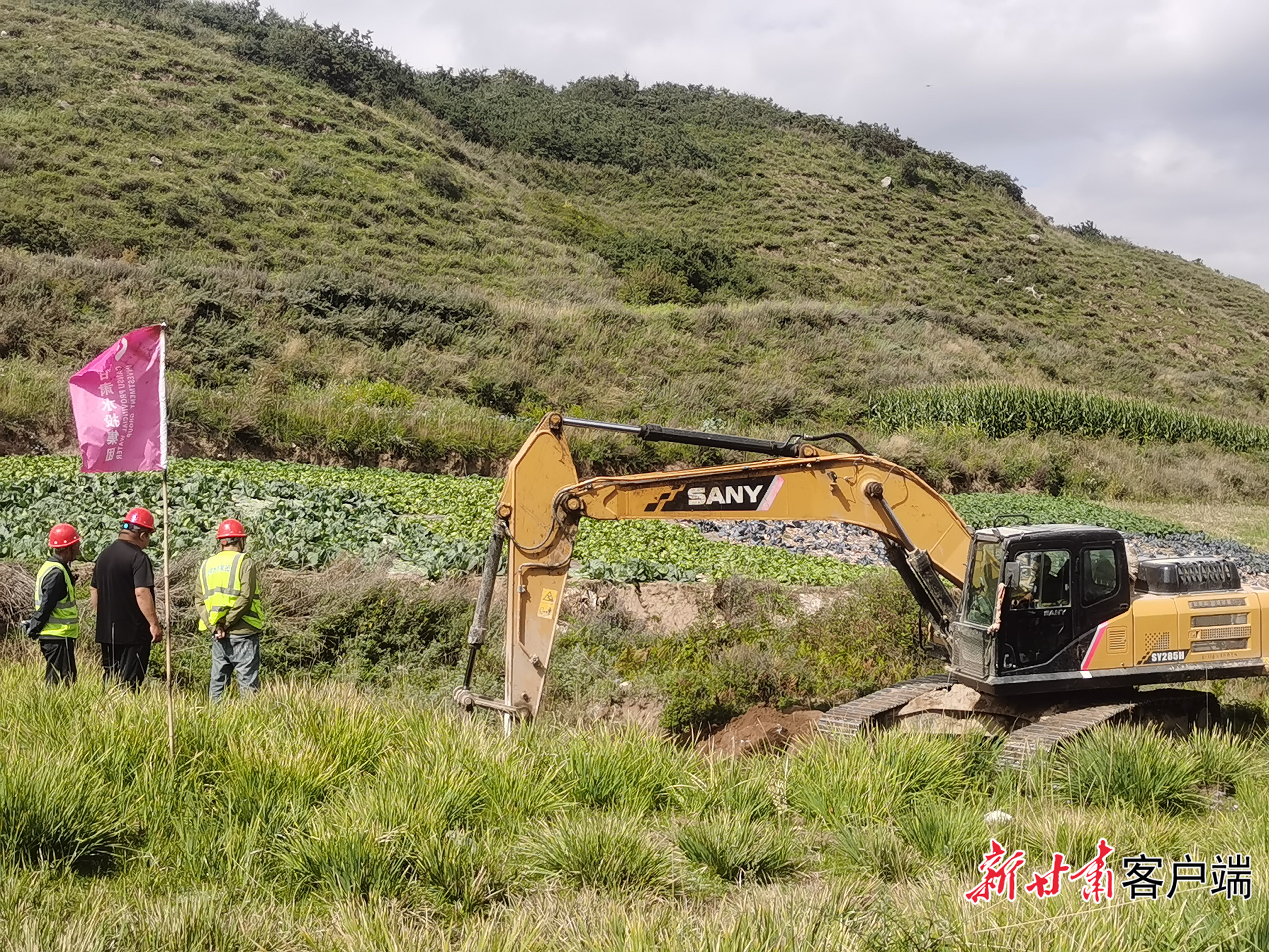 在八門寺村西700多米處,甘肅水投集團(tuán)的建設(shè)者正在開挖飲水蓄水池,鋪設(shè)入村的最后700米供水管道,建設(shè)永久性水源。