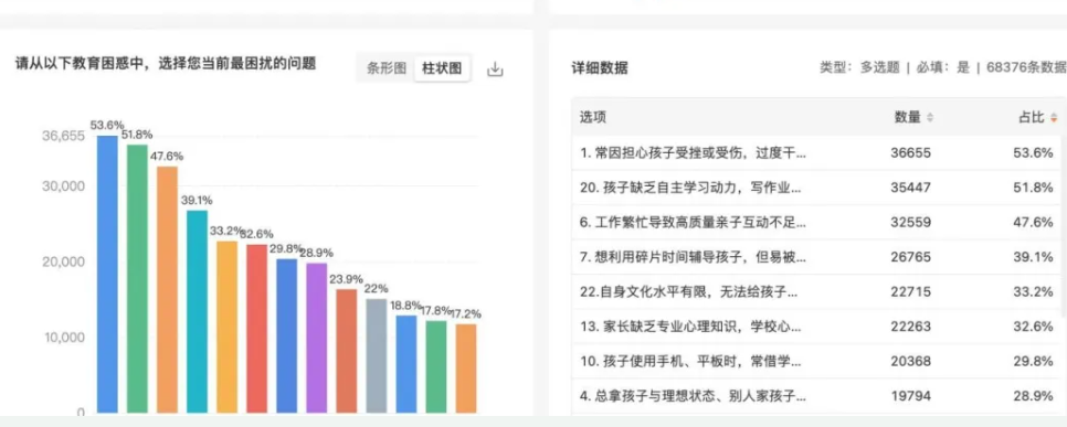 為了精準(zhǔn)回應(yīng)每個(gè)家庭教育需求,活動(dòng)前,我們通過(guò)廣泛收集家長(zhǎng)困惑,形成《2025年城關(guān)區(qū)第二屆家校社協(xié)同育人大講堂家長(zhǎng)教育困惑調(diào)查問(wèn)卷》。問(wèn)卷于12月3日下發(fā),邀請(qǐng)全區(qū)中小學(xué)家長(zhǎng)匿名填寫(xiě),從22項(xiàng)高頻家庭教育難題中勾選“最困擾的5項(xiàng)”。截至12月5日,共回收有效答卷7萬(wàn)余份。此次調(diào)查為本屆大講堂主題設(shè)計(jì)提供了數(shù)據(jù)支撐,助力專(zhuān)家靶向破解家庭教育中的突出難題。