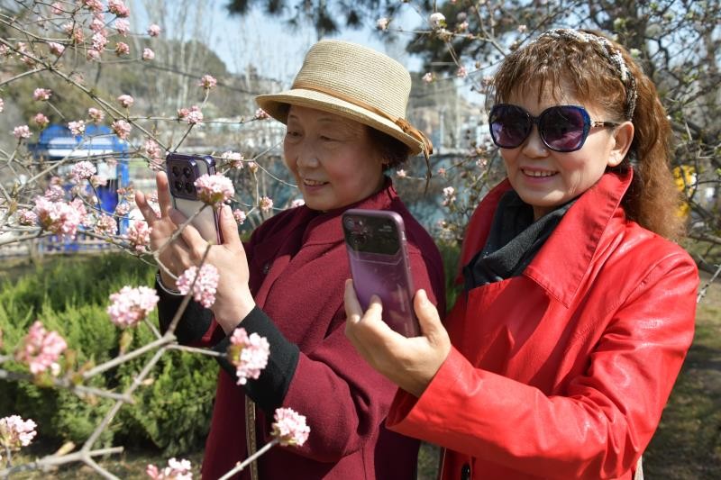近日,天氣回暖,蘭州市區(qū)花卉競相綻放。中山橋東側(cè)街心花園的丁香花率先吐蕊,成為城中最早綻放的花朵。芬芳的花朵吸引過往市民紛紛駐足,她們用手機(jī)認(rèn)真記錄下這抹明媚春色,鏡頭中滿是對(duì)春景的喜愛。(蘭州日?qǐng)?bào)社全媒體記者 孫建榮 通訊員 郝俊奎 文/圖)