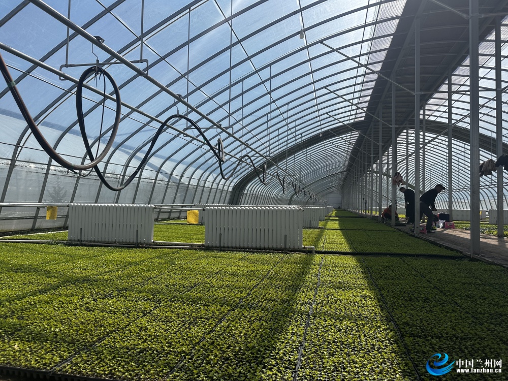 與之毗鄰的榆中滿福蔬菜專業(yè)合作社育苗大棚內(nèi)同樣生機盎然:一株株嫩綠的菜苗密密麻麻地排列在苗床上,花椰菜、松花菜、西蘭花、甘藍、青筍等等不一而足,這些茁壯成長的菜苗將于6月中旬上市。榆中滿福蔬菜專業(yè)合作社目前種植高原夏菜的主要品種,并用多項科技手段助力,大大提升種植效率,今年第一批2500萬株育苗已經(jīng)完成。新引進的全自動育苗機操作簡便,農(nóng)戶只需在智能操作面板上輸入?yún)?shù),諸如育苗數(shù)量、種苗品種、預計移栽時間等,育苗機便開啟高效工作模式,從裝土、抹平、點播、覆土到完成1盤128穴的育苗盤,采用機械作業(yè)后2人每小時可完成50盤,較人工工作效率可提升40%以上。