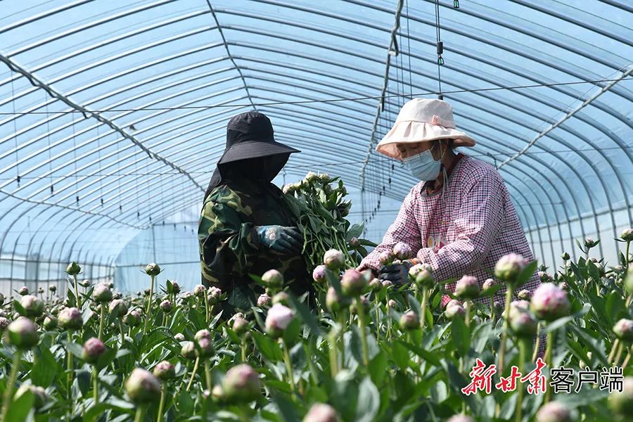 一大早,薄霧未散,走進(jìn)蘭州新區(qū)秦川現(xiàn)代農(nóng)業(yè)產(chǎn)業(yè)園的智能溫控大棚內(nèi),采花工人兩人一組,手持剪刀,穿梭于芍藥叢中。